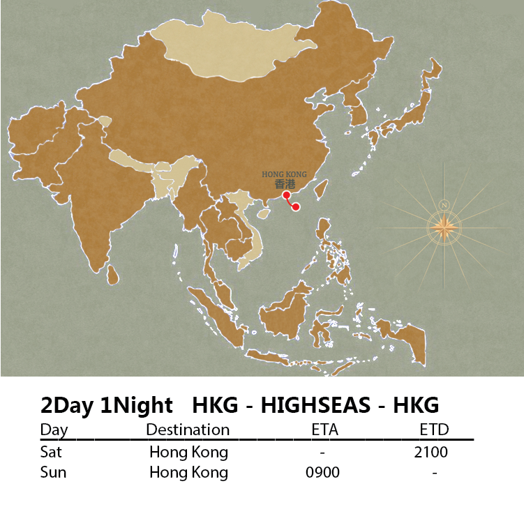 Ex-Hong Kong (Now - October 2014)Fly Cruise Package, Ex-KL (special)